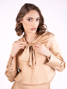 GlowEve ženska moderna i elegantna satenska košulja s V-izrezom i vezicom (podesivim strukom).