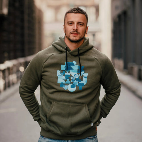 Jednobojni ležerni dukser s kapuljačom i dugmadima, pogodan za jesen/zimu.