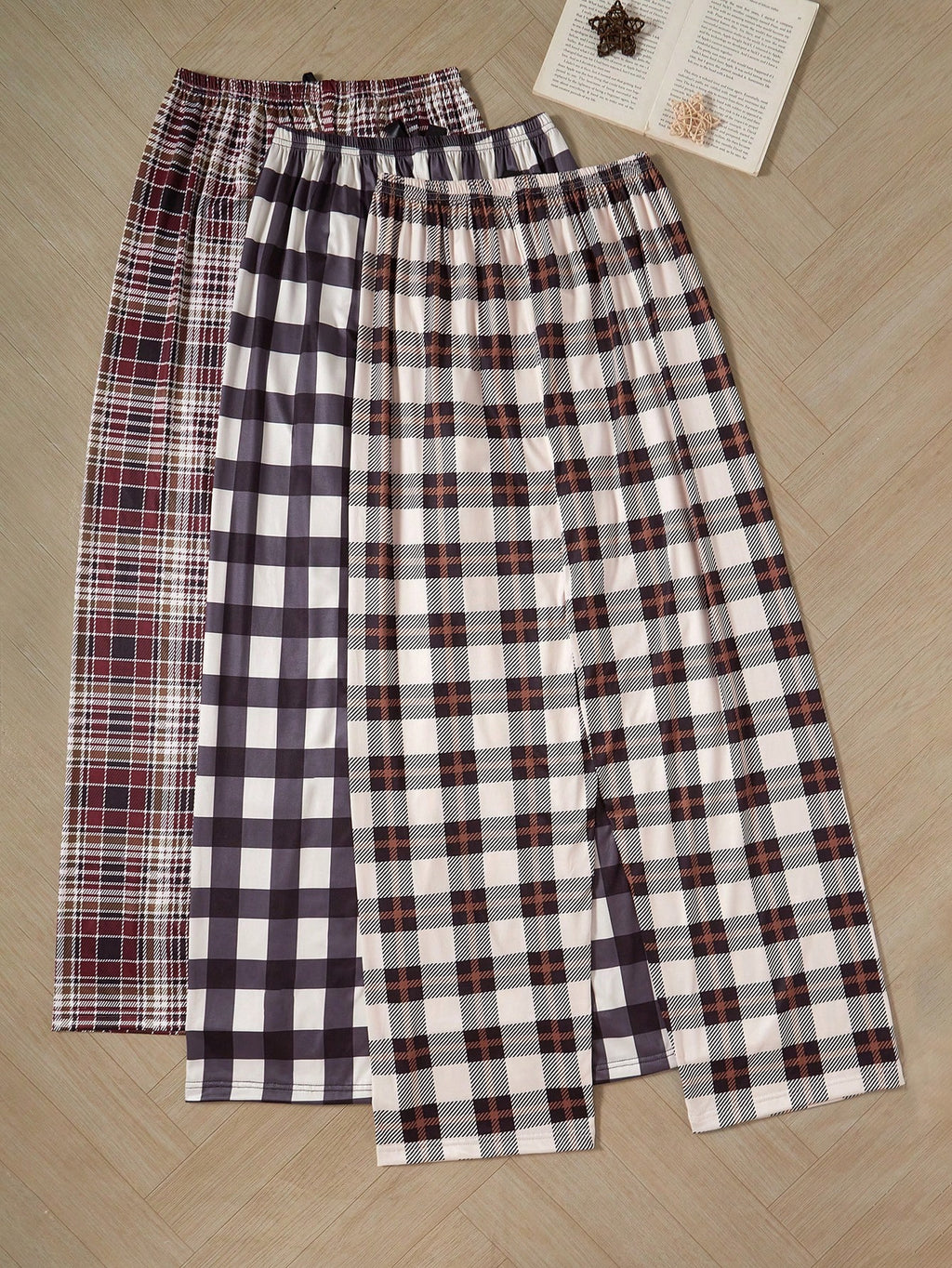 3 Paar lässige karierte bedruckte Hosen, minimalistischer Stil, geeignet für den täglichen Gebrauch