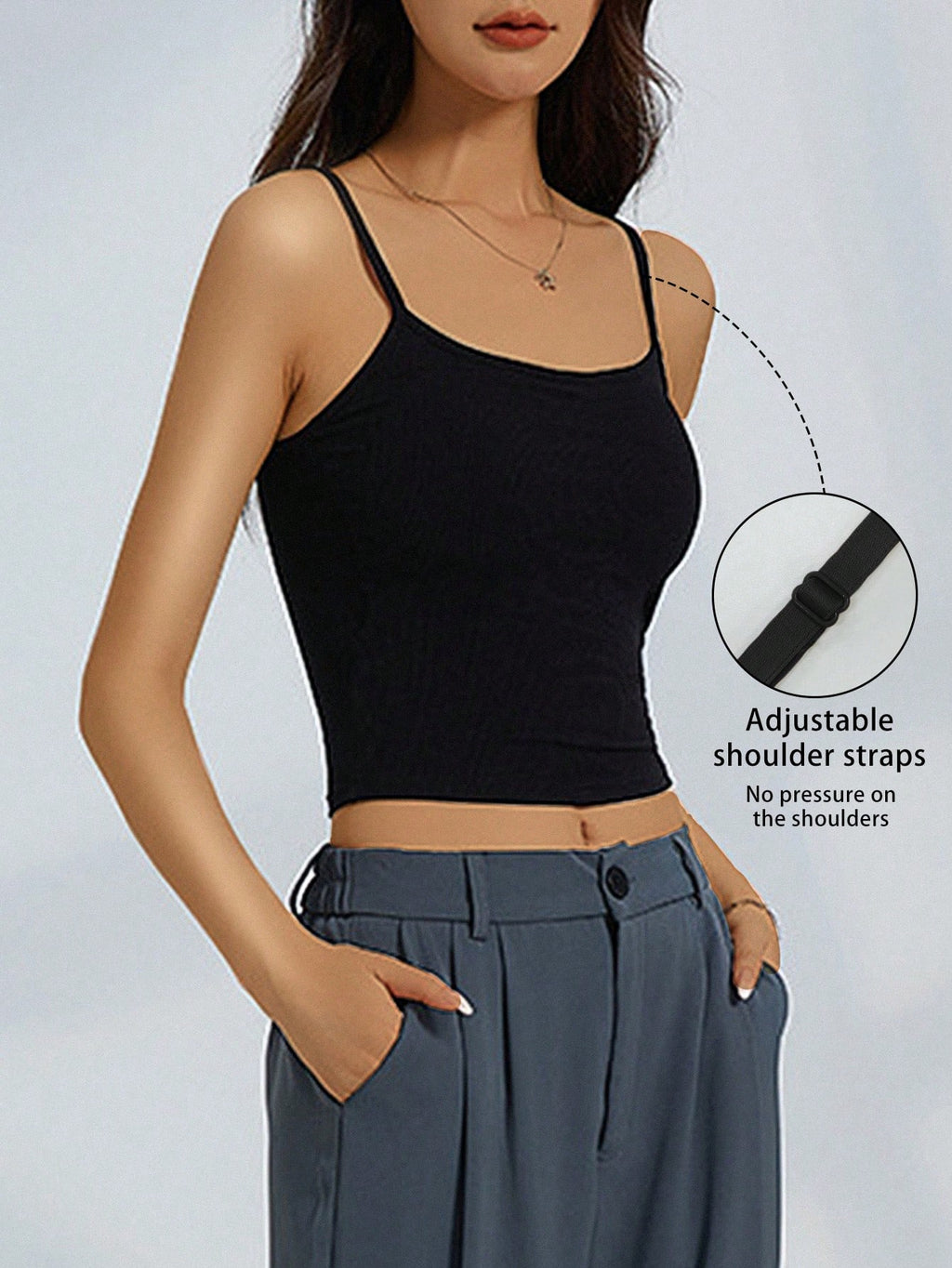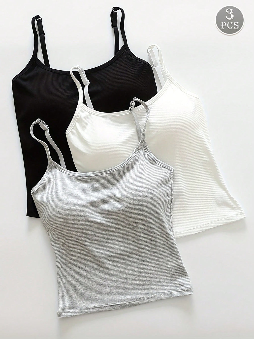 3 Stück Damen einfacher gerippter Träger-Top mit gepolstertem BH, lässiges figurbetontes Crop Top