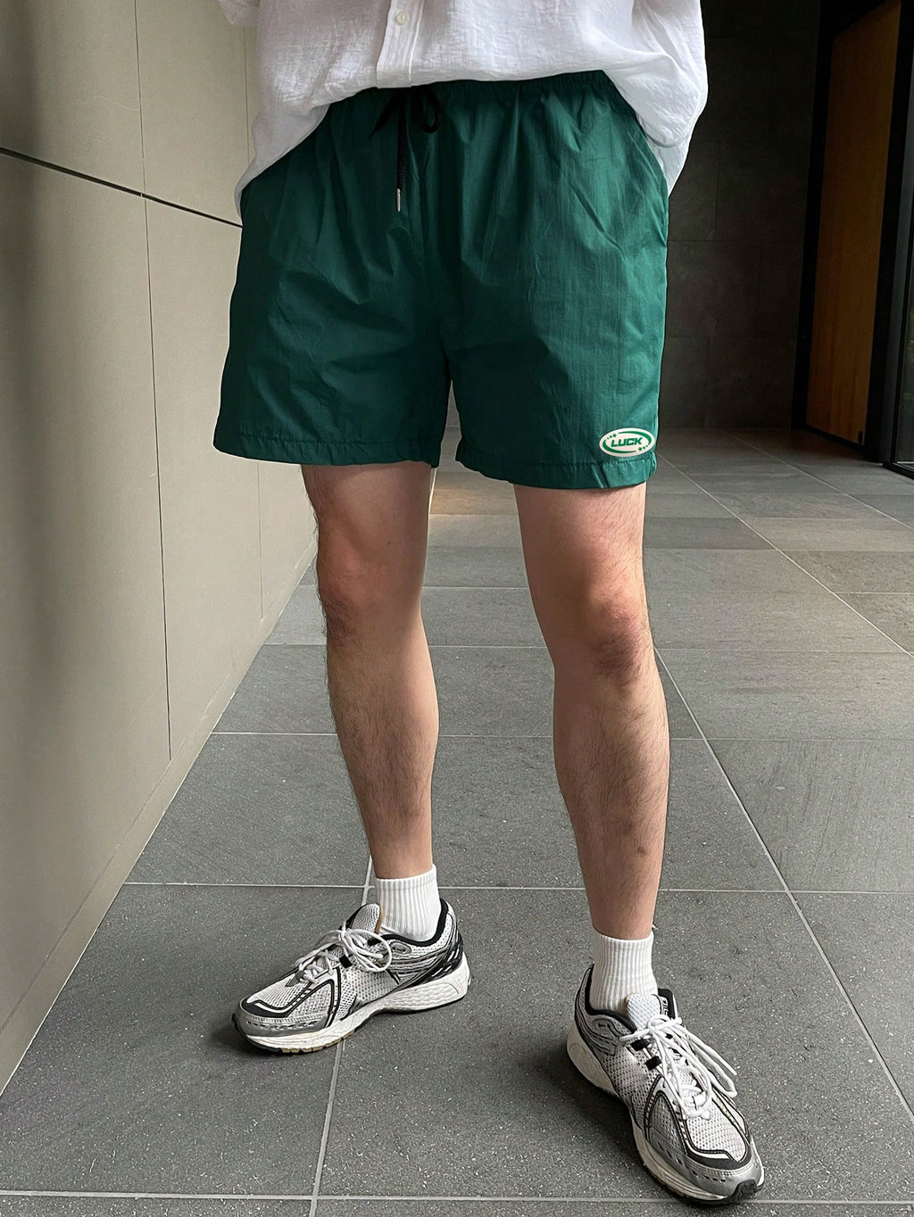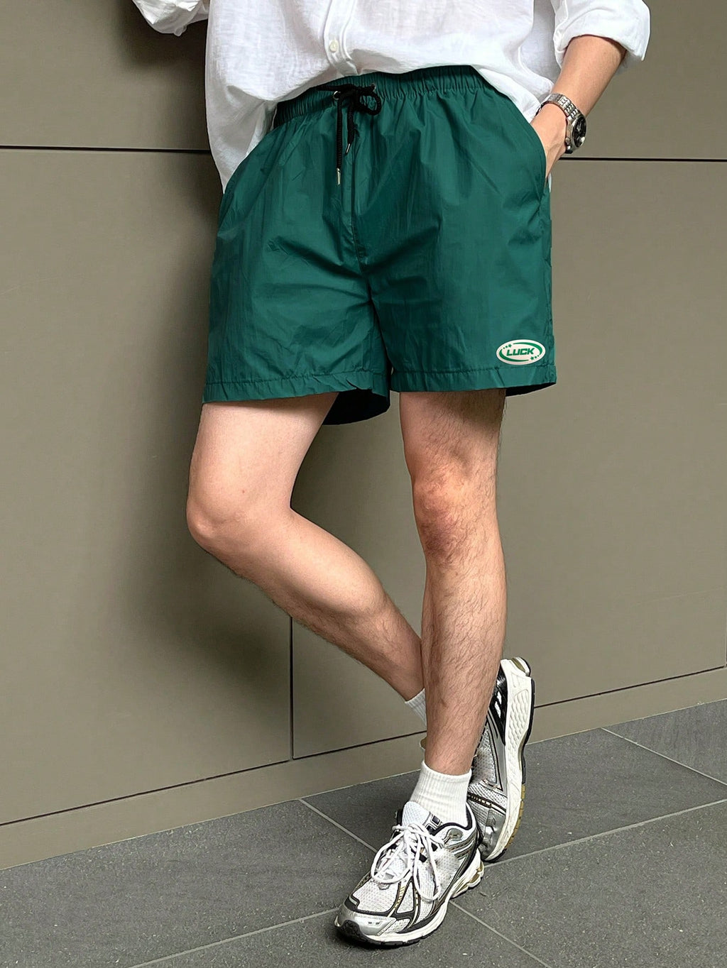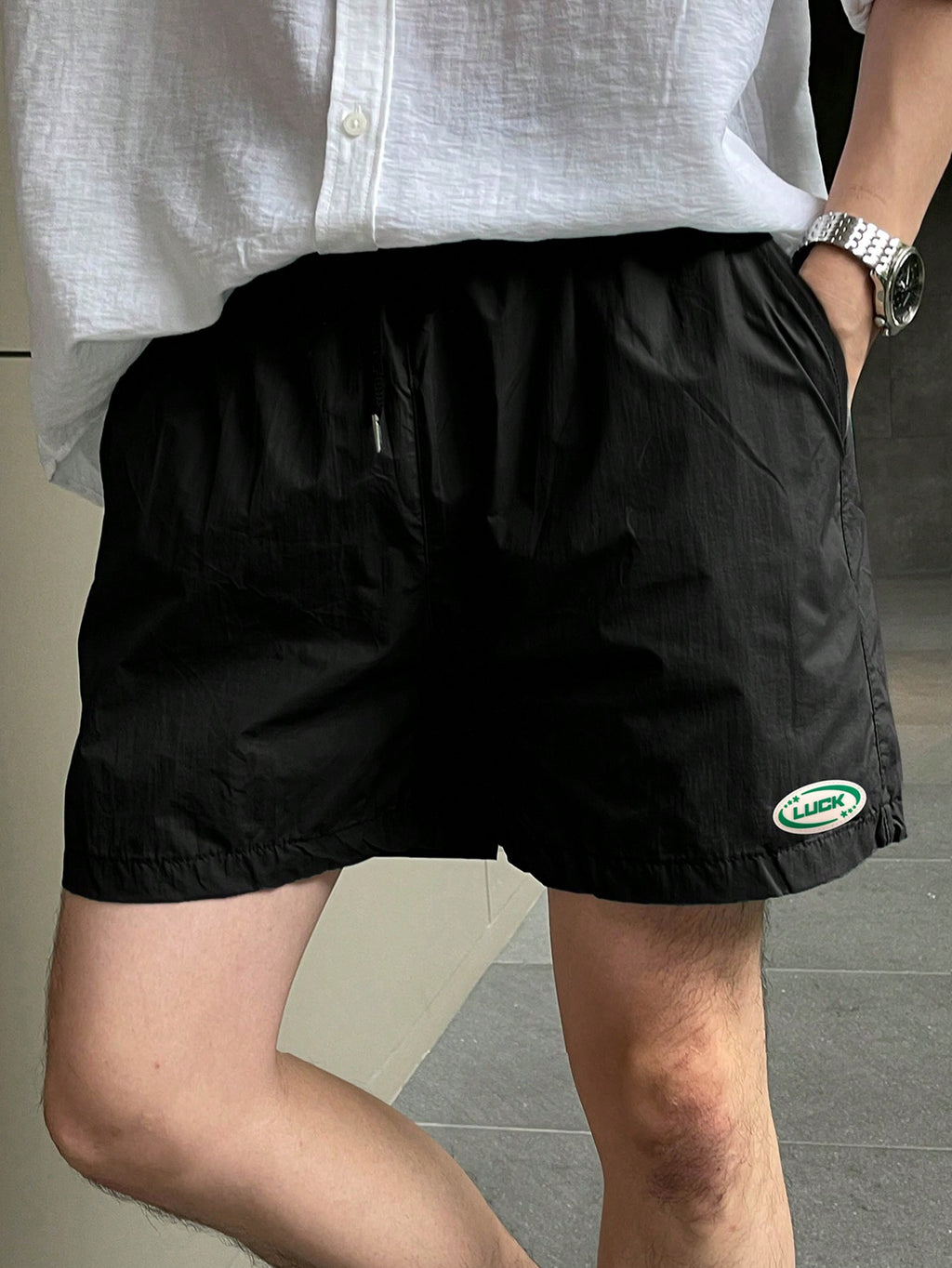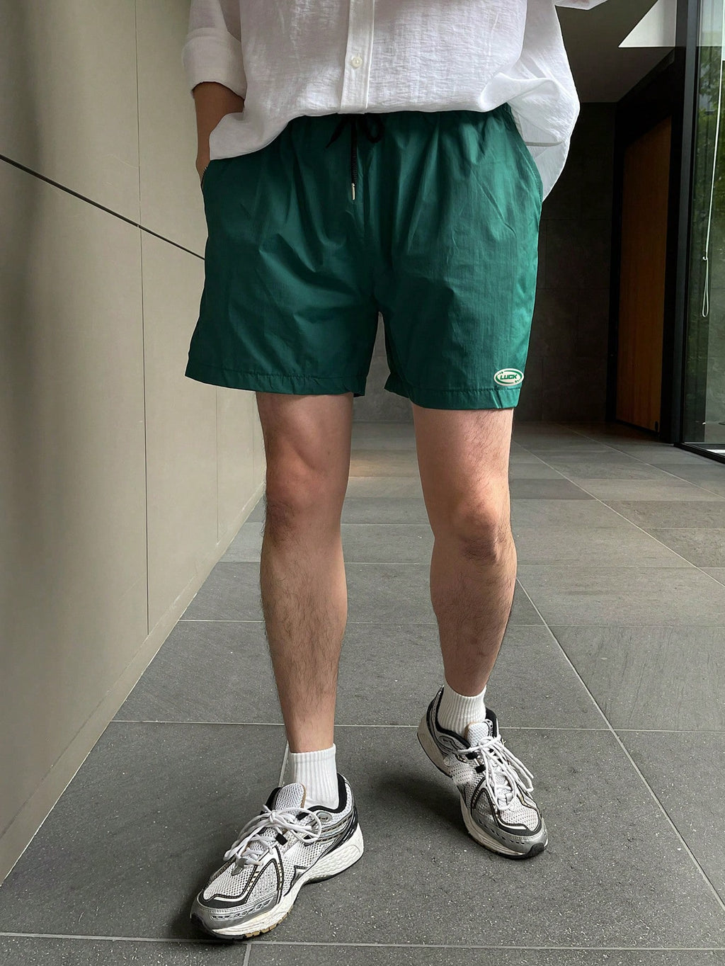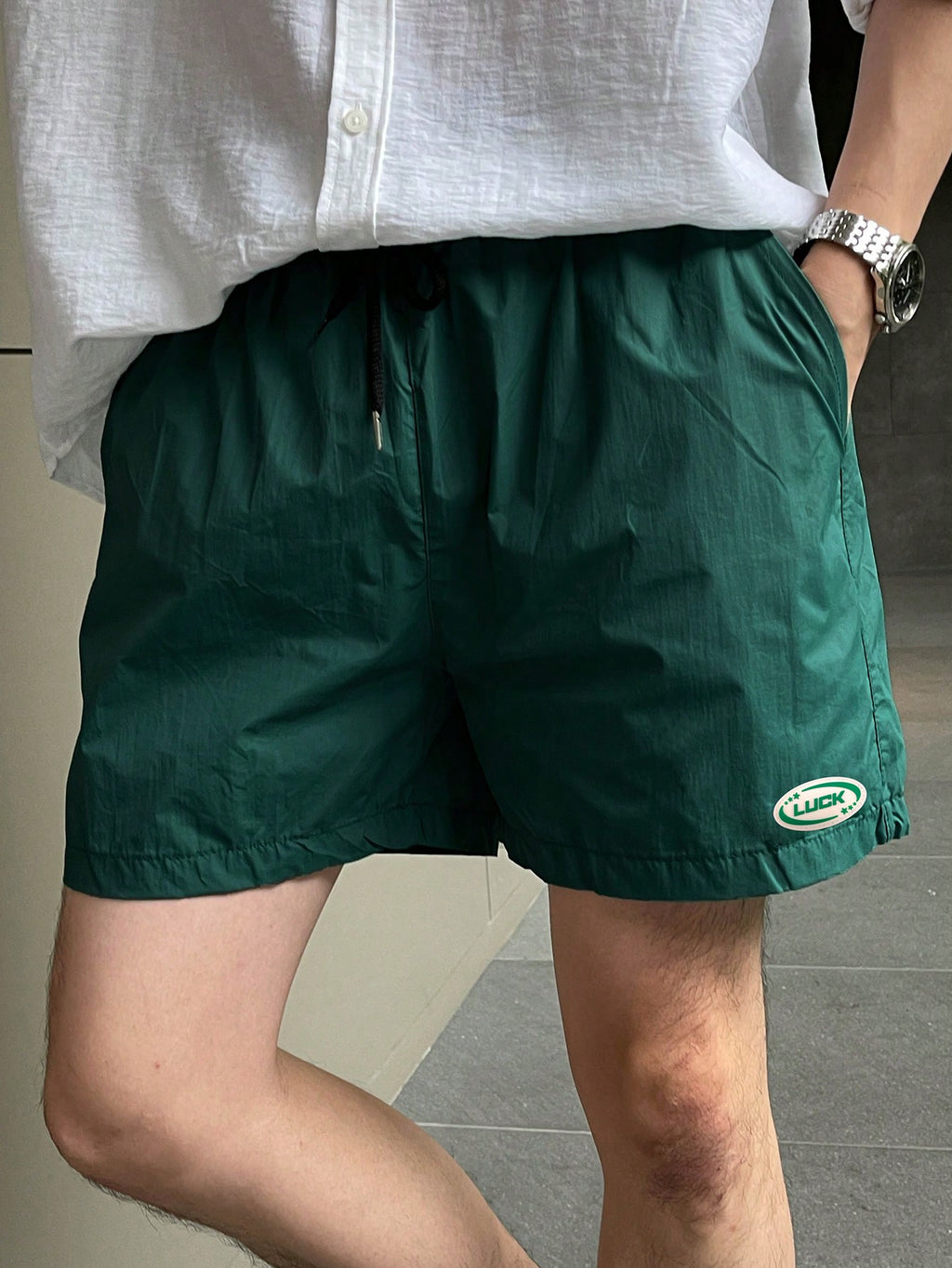 BELLAVOG Men Letter Patched Detail Drawstring Waist Shorts