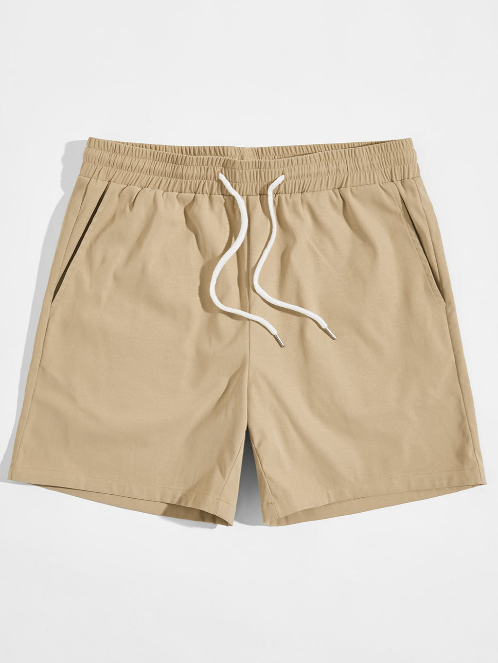 BELLAVOG Men Slant Pocket Drawstring Waist Solid Shorts Baggy Sweat Daddy Khaki Going Out Basic Husband