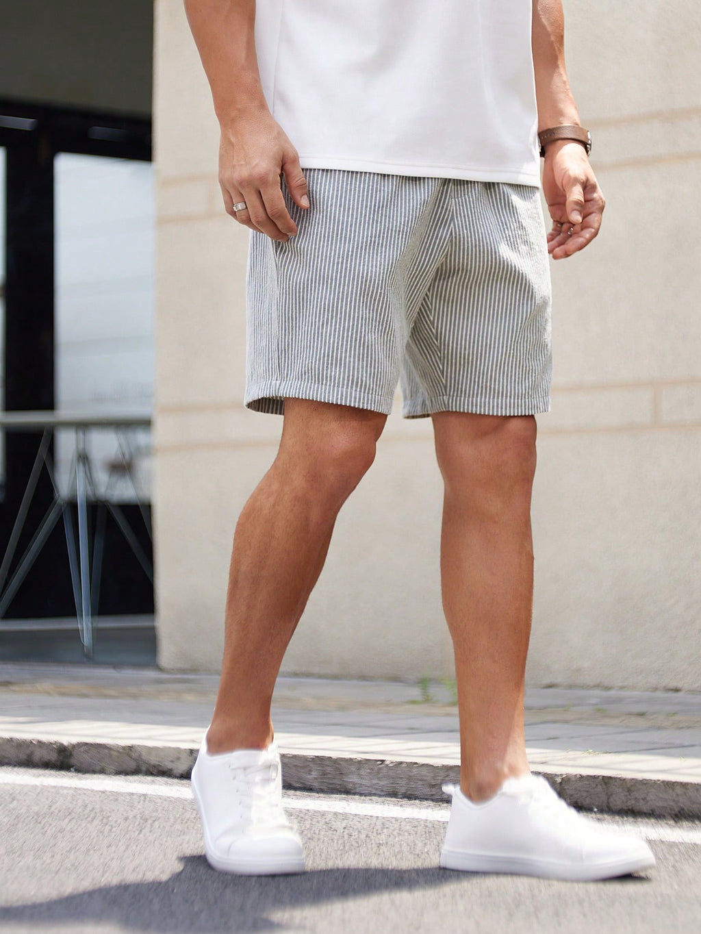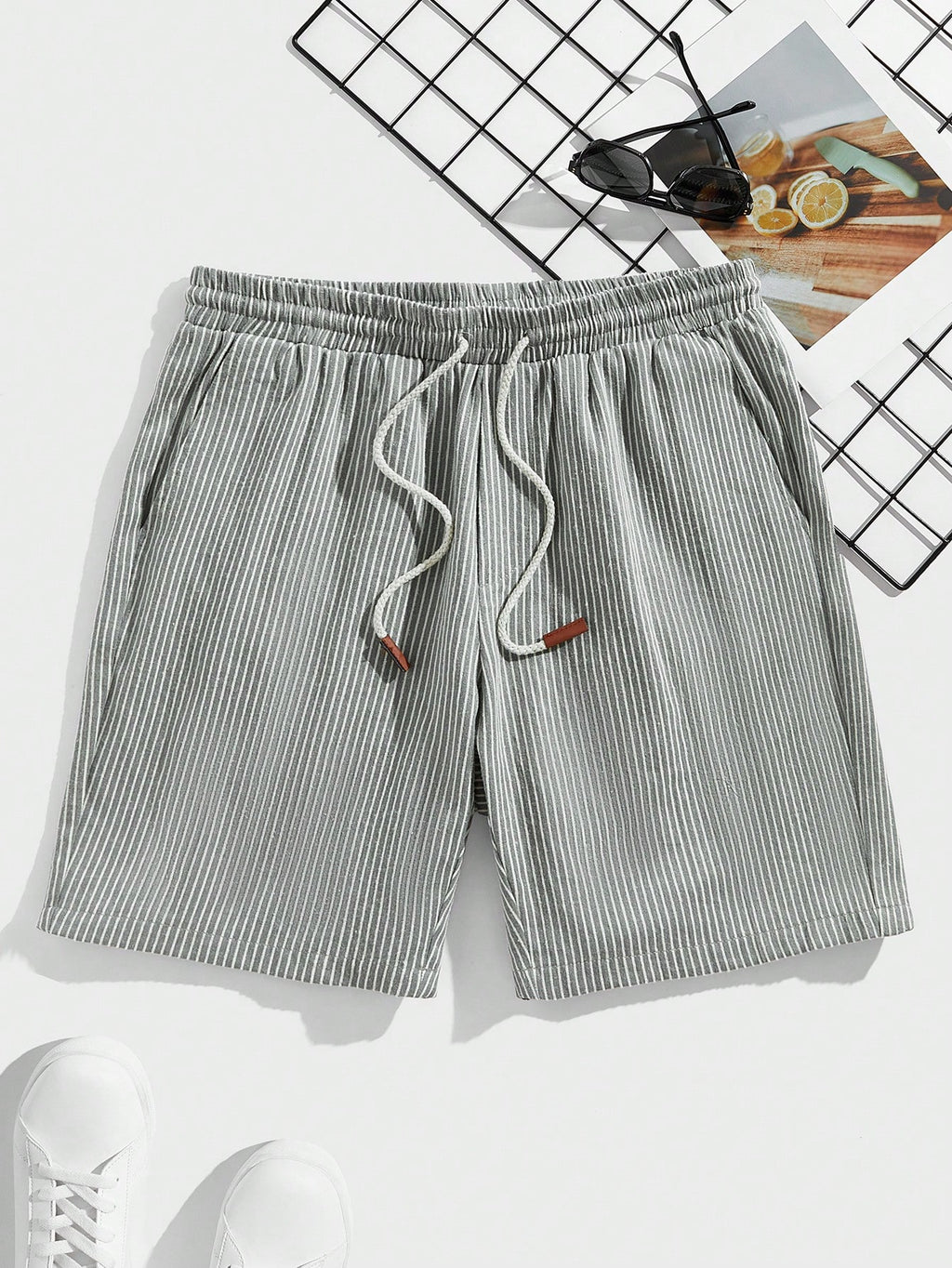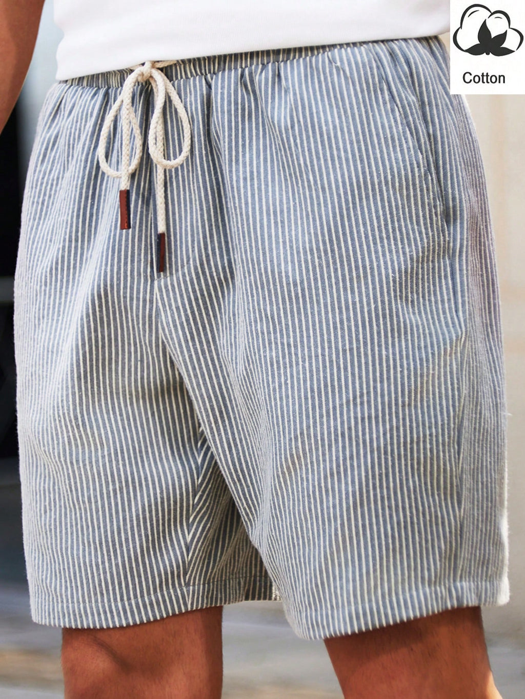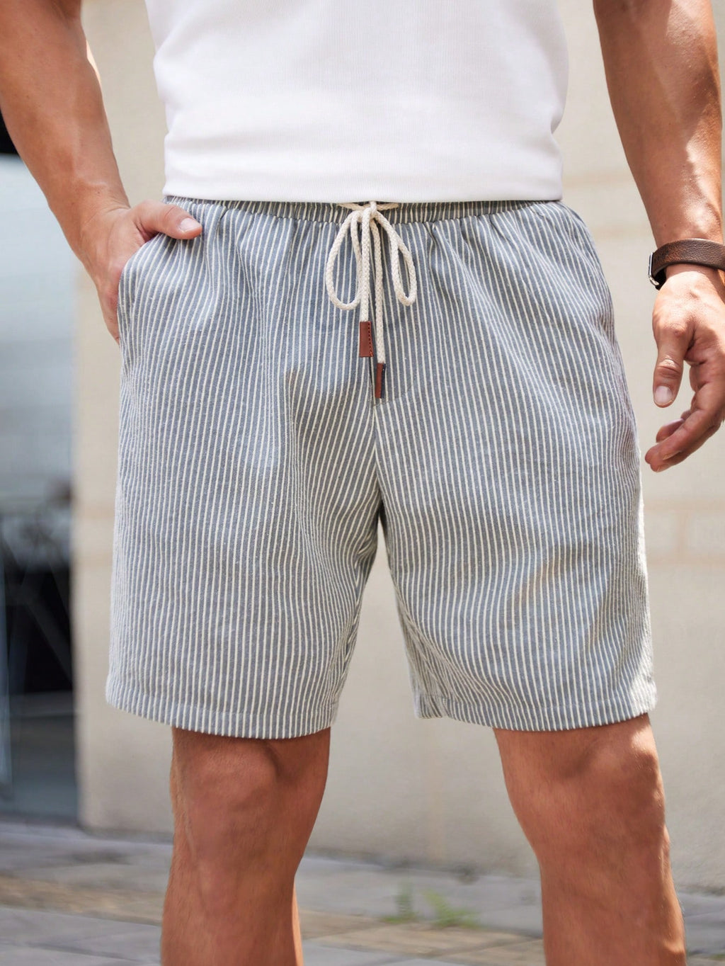 BELLAVOG Men's Woven Striped Mid-Waist Slim Fit Casual Shorts, Straight Leg Sport Knee Shorts, Suitable For Daily Wear In Summer, For Husband, Boyfriend Gifts
