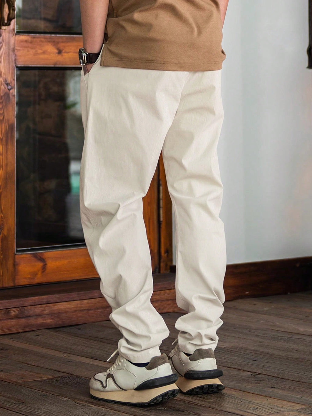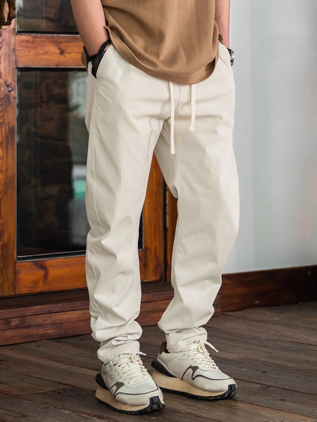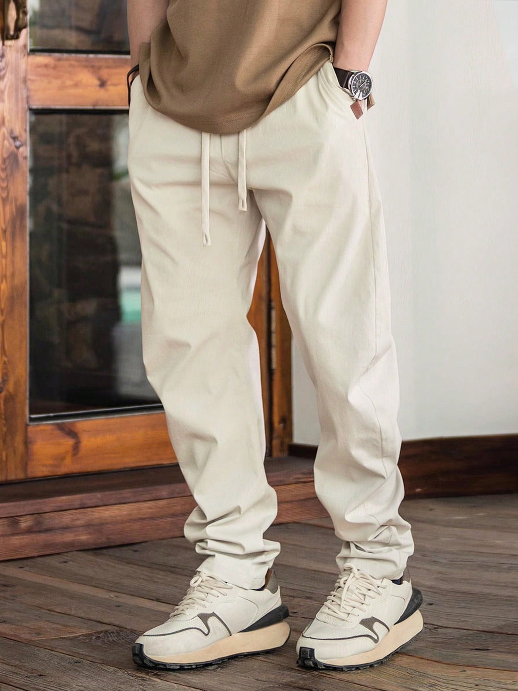 Muške jednobojne jogger hlače sa steznikom