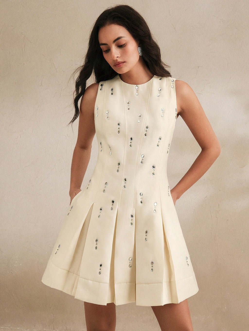 MIU AZRA Čvrsta Boja Neformalna Plisirana Kratka Ženska Pletena Suknja, Prikladna za Odmor, Večernji Izlazak, Jesen/Zimu