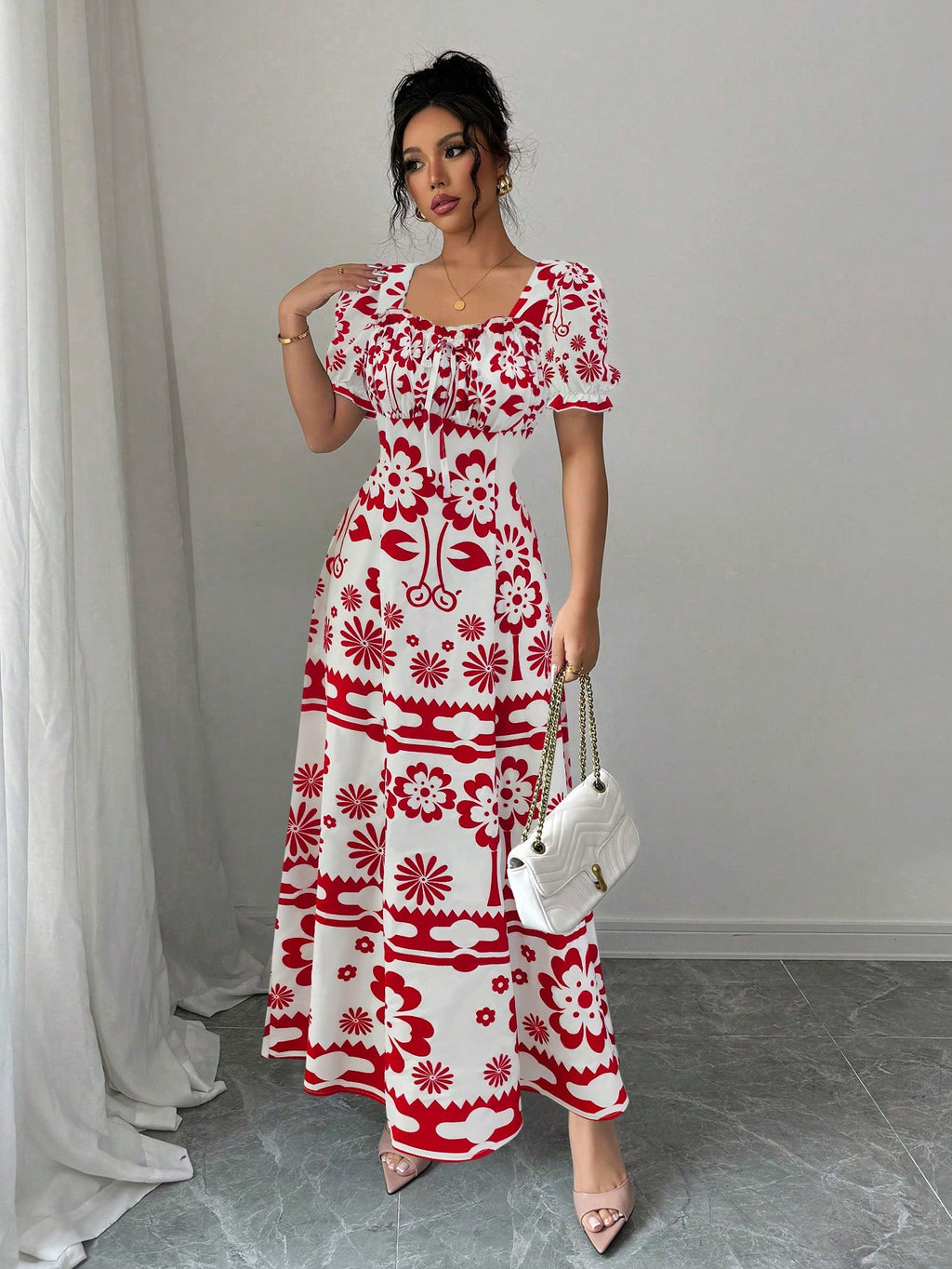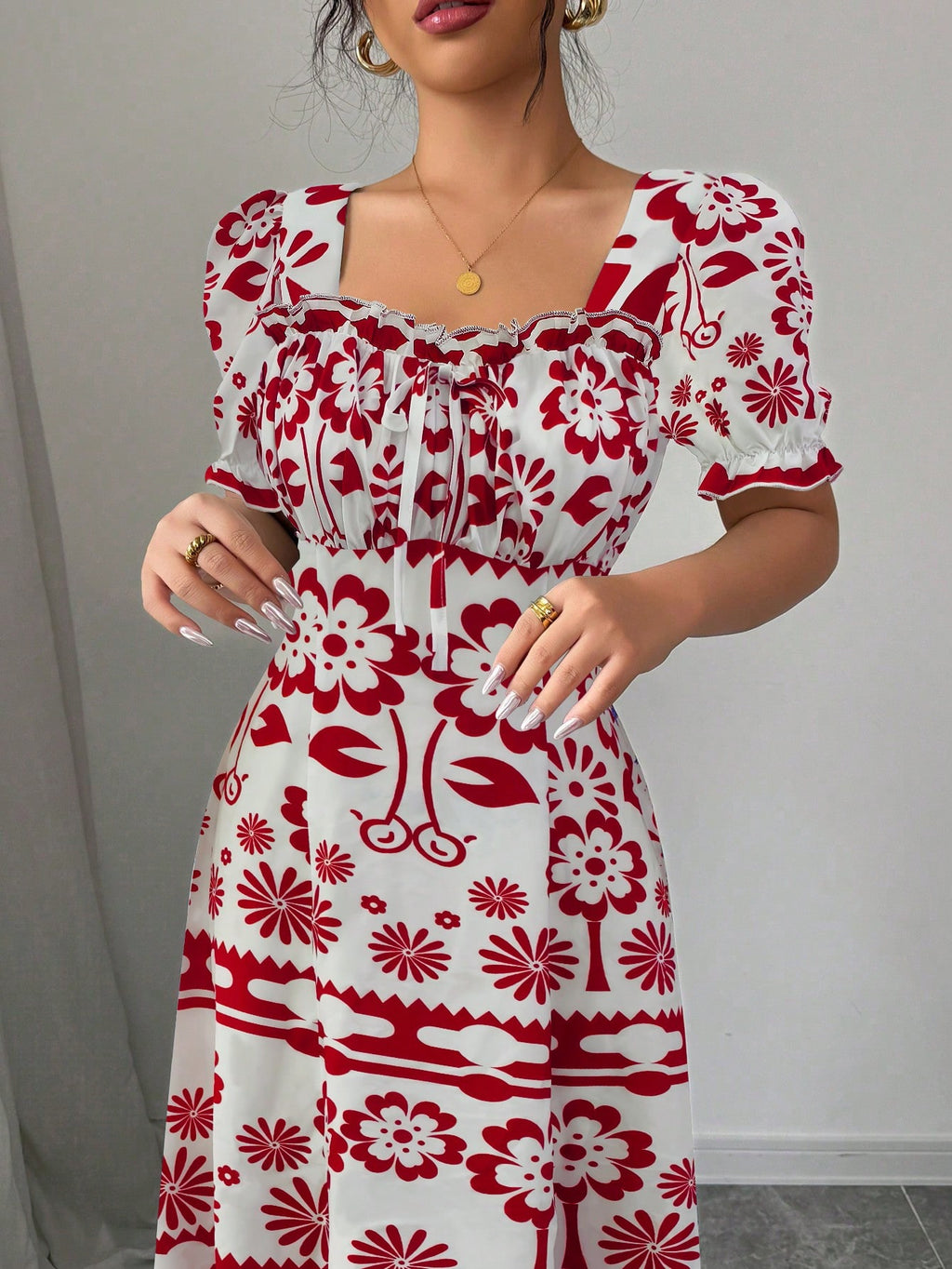 MIU AZRA Elegantna mini suknja s perlama u crvenom tweedu za žene