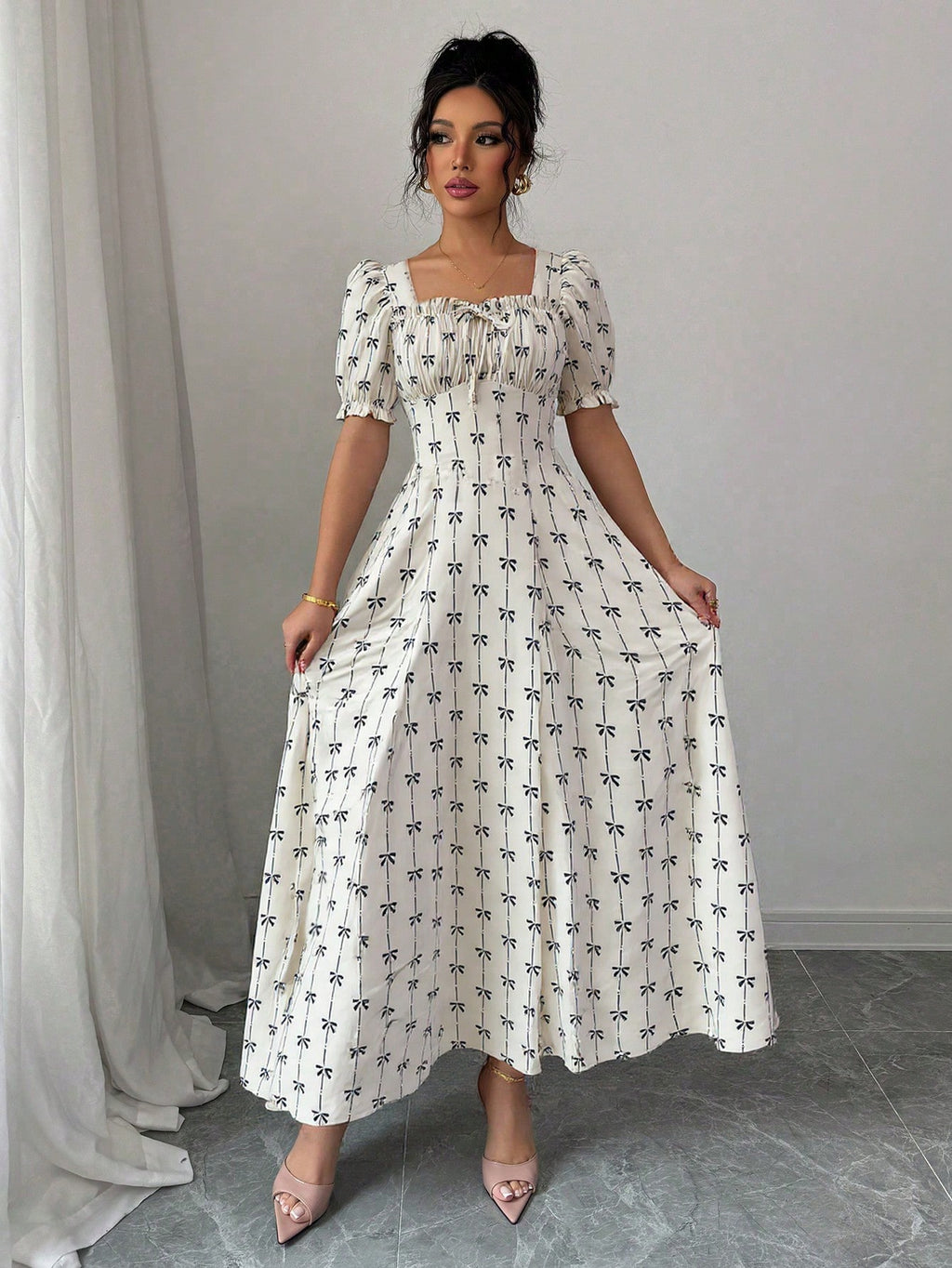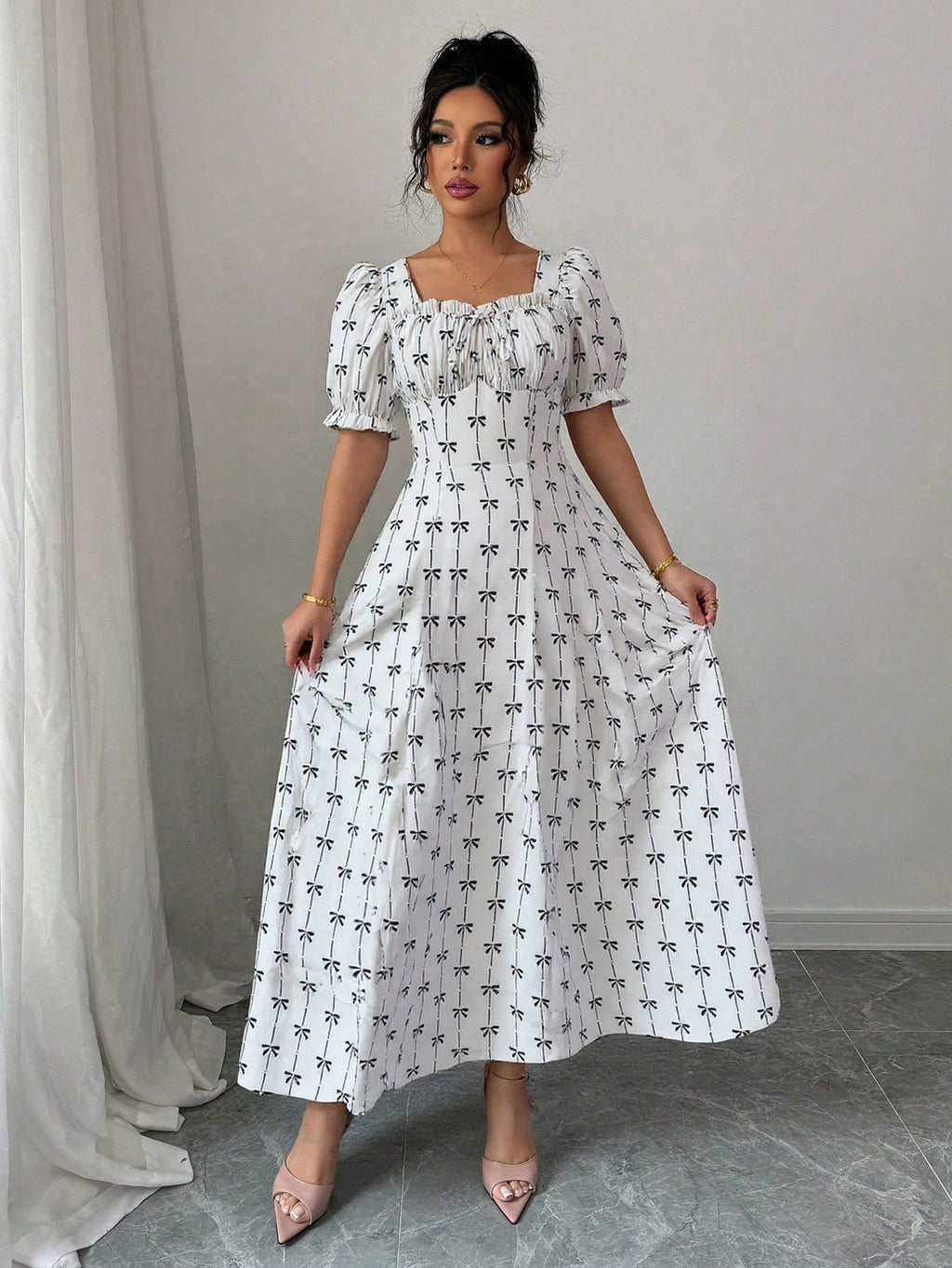 MIU AZRA Elenzya Asimetrična Prugasta Majica sa Dugim Rukavima za Žene, Elegantna Romantična, Casual i Komutna Odjeća, Haljina za Noć Veštica, Crna